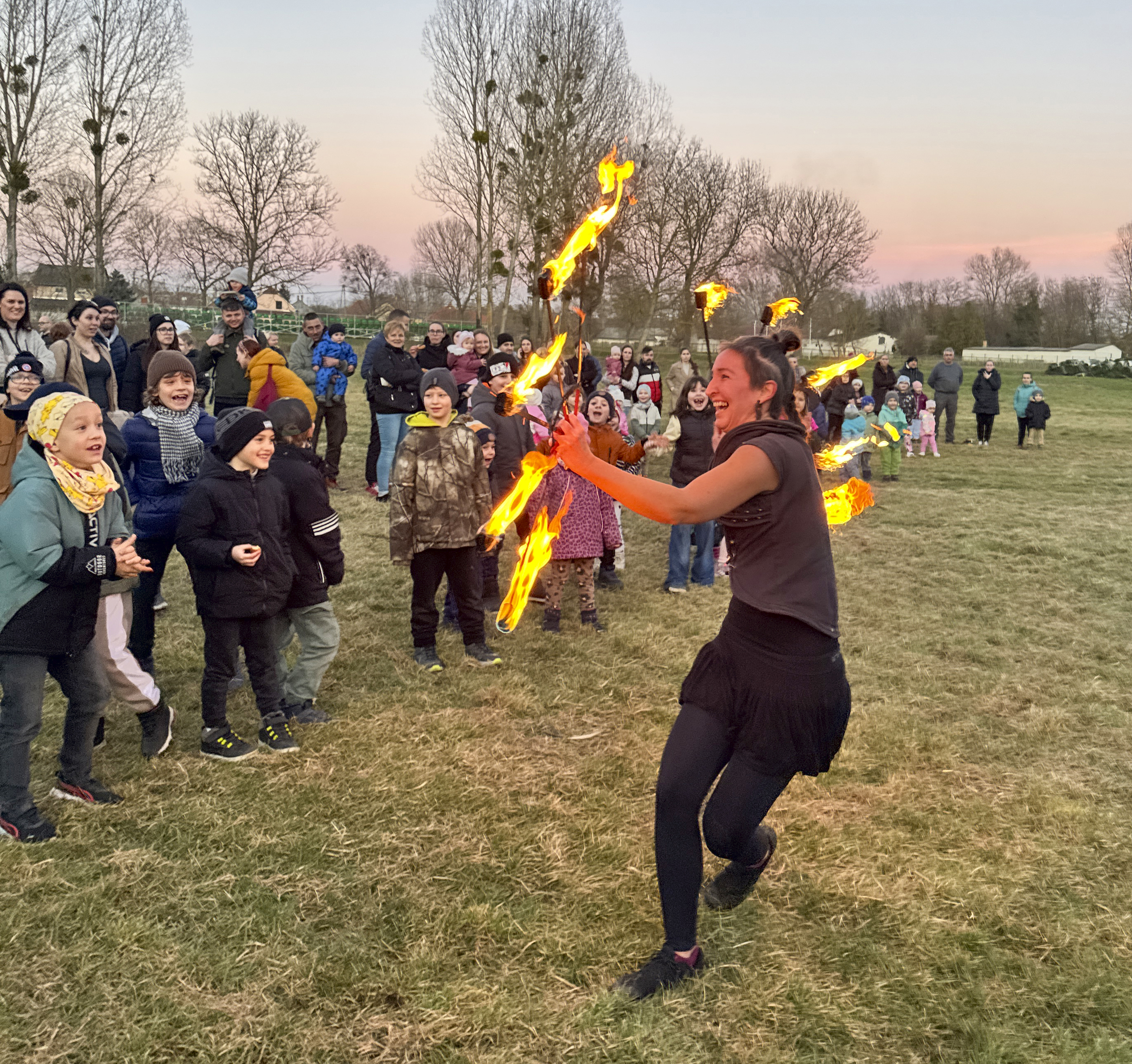 És mivel február 20-án valóban megtapasztalhattuk, hogy nem adja olyan könnyen magát a tél, semmit sem bíztunk a véletlenre: gyermekekből, felnőttekből „verbuvált” kis hadsereg gyűlt a Szpari-pályán emelt hatalmas máglya köré, dob és kereplő szólt, a tűzzsonglőr kezében a lángok, a boszorkányok kezében pedig a seprűk táncoltak.